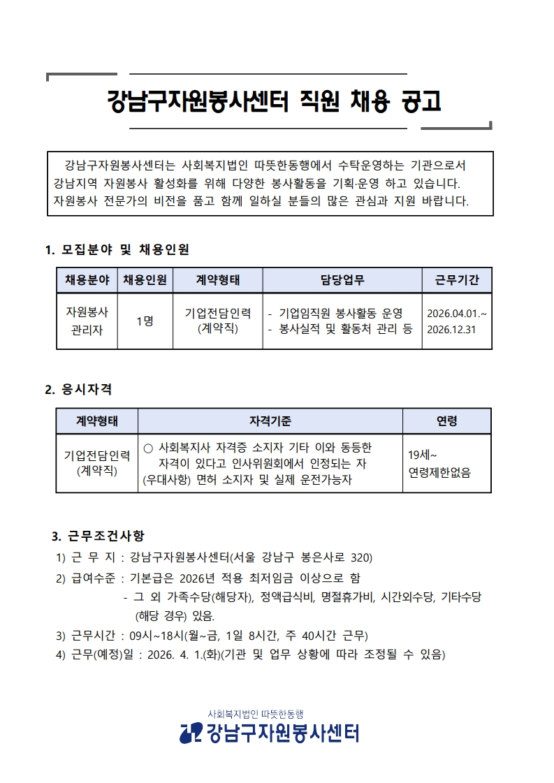 °³²±¸ÀÚ¿øºÀ»ç¼¾ÅÍ °è¾àÁ÷ Á÷¿ø ä¿ë °ø°í